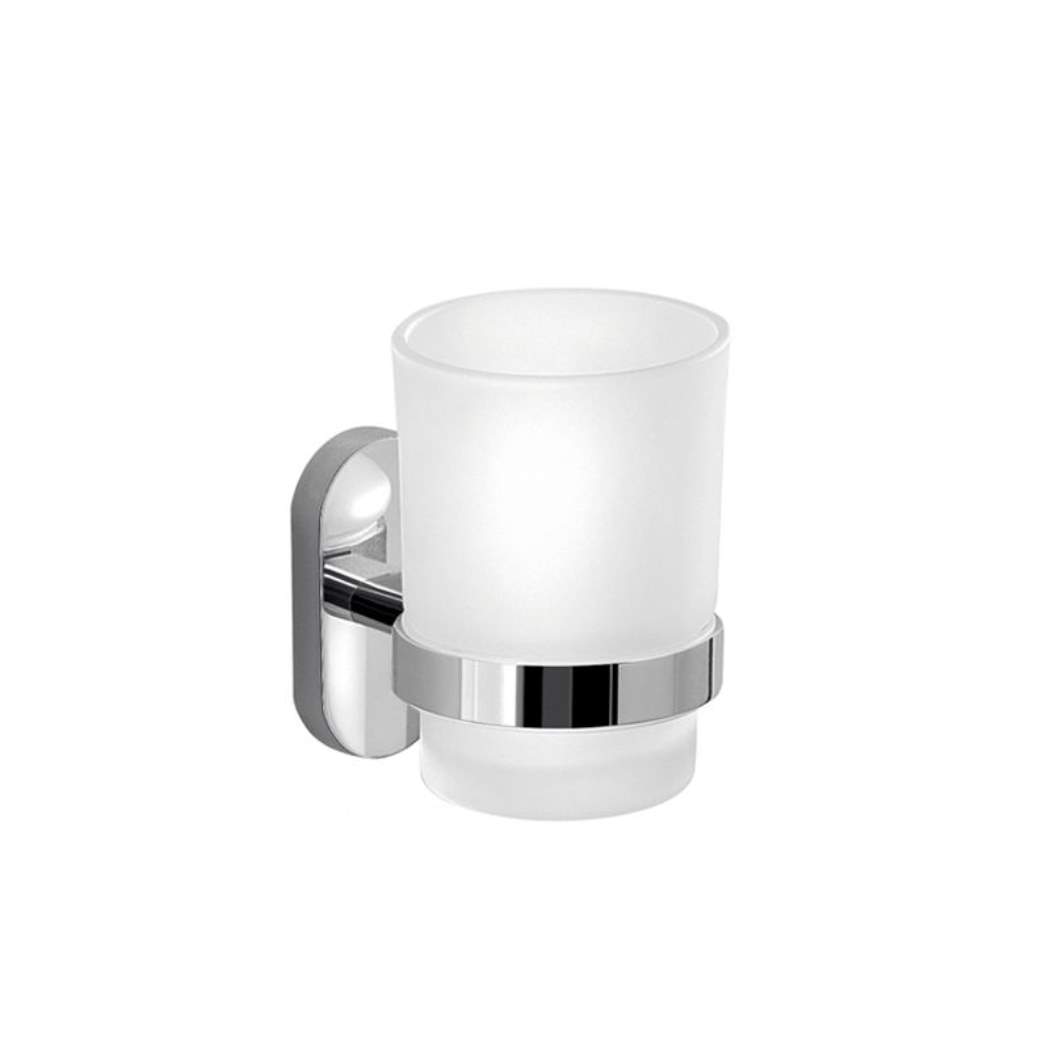 Αξεσουάρ μπάνιου, ποτηροθήκη επιτοίχια GEDY 5310, ένας όμορφος συνδυασμός μετάλλου και αμμοβολισμένου γυαλιού, σε χρωμέ απόχρωση.
