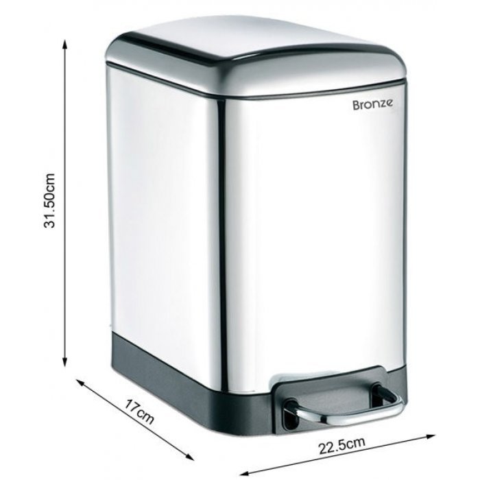 Αξεσουάρ μπάνιου, καλάθι απορριματων - χαρτοδοχείο τετράγωνο χωρητικότητας 5 λίτρων της σειράς Hotel, με σύστημα ελεγχόμενου κλεισίματος soft close, σε χρωμέ φινίρισμα.
