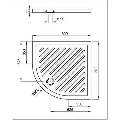 - Ακτίνα γωνίας (mm): 550