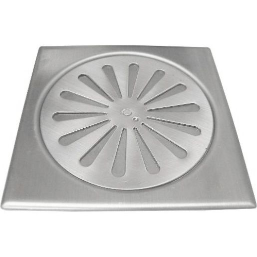 Σχαράκι δαπέδου τετράγωνο, ασφαλείας, διαμέτρου Ø100 από ίνοξ. Χρησιμοποιείται σε σιφώνια δαπέδου μπάνιου, τοποθετείται εύκολα και έχει μεγάλη αντοχή.